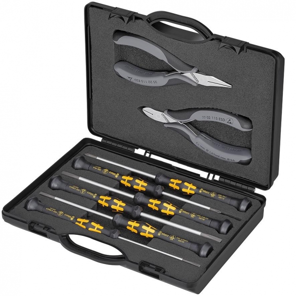 Knipex 00 20 18 ESD Elektronikai fogó-tok elektronikus alkatrészeken végzendő munkákra alkalmas szerszámokkal 205 mm
