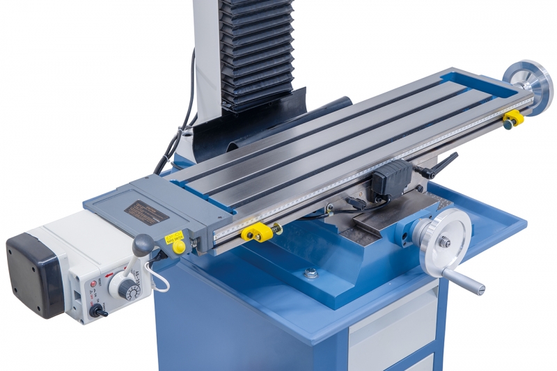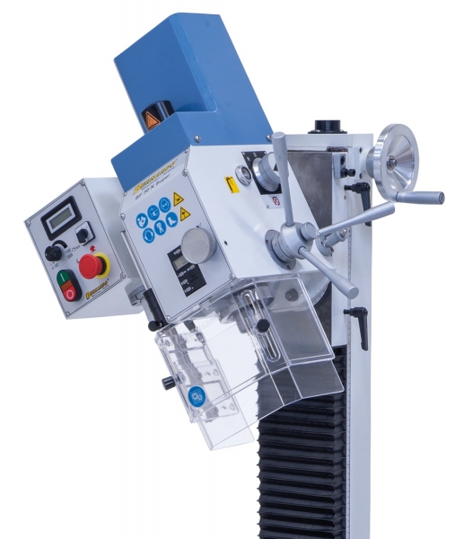 A jól bevált KF 25 Vario továbbfejlesztése sorozatszerűen nagyobb orsófelvételt, nagyobb maróasztalt, valamint 2 digitális mutatót kínál fordulatszámhoz (50 - 3000 ford./perc) és fúrásmélységhez. Ennek a kompakt fúró- és marógépnek a további érdekes ismertetőjelei az elektronikus, fokozatmentesen szabályozható fordulatszám, valamint az -90°-tól +90°-ig elfordítható marófej.