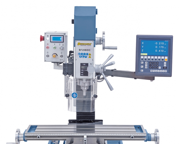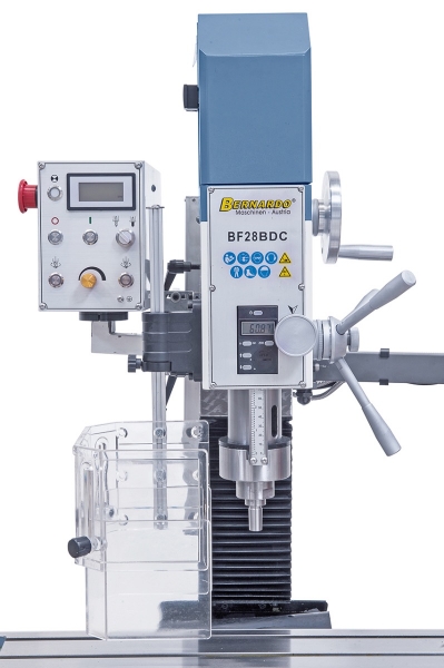 Die Bohr- und Fräsmaschine BF 28 BDC ist serienmäßig mit einem hochwertigem Gleichstrommotor ausgestattet. Wesentliche Vorteile, die sich daraus ergeben, sind das hohe Drehmoment im unteren Drehzahlbereich und die annähernd konstante Drehzahl unter Last. Ihren Einsatzbereich findet dieses Modell hauptsächlich beim professionellen Anwender, im Modellbau, aber auch im Ausbildungsbereich.