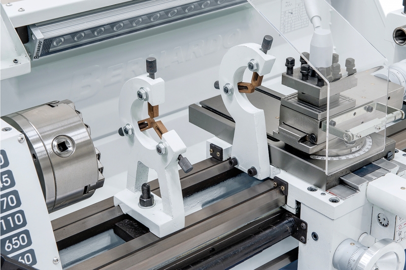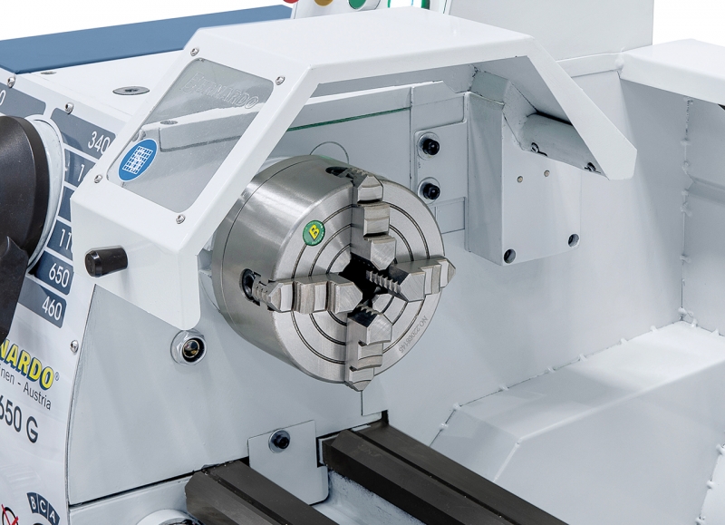 Die Drehmaschine Profi 650 G ist serienmäßig mit einer Leit- und Zugspindel zum Gewindeschneiden bzw. für den automatischen Längs- und Planvorschub ausgestattet. Durch das 12-Stufen-Schaltgetriebe wird ein schnelles Einstellen der Drehzahlen ermöglicht - kein Keilriemenwechsel notwendig. Durch ihre kompakte Bauweise und das hohe Eigengewicht bietet diese Maschine eine hohe Laufruhe und garantiert dadurch präzises Arbeiten.