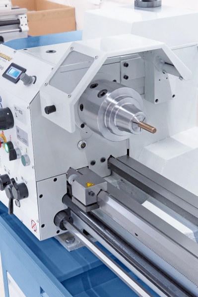 Die Vario-Drehmaschine Profi 880 G Vario ist serienmäßig mit einem Vorgelege ausgestattet, wodurch ein Wechseln der Drehzahlstufe mittels Keilriemen entfällt. Ein weiteres Merkmal dieser Maschine ist der serienmäßige Frequenzumrichter, wodurch ein hohes Drehmoment im unteren Drehzahlbereich und eine annähernd konstante Drehzahl unter Last gewährleistet wird.