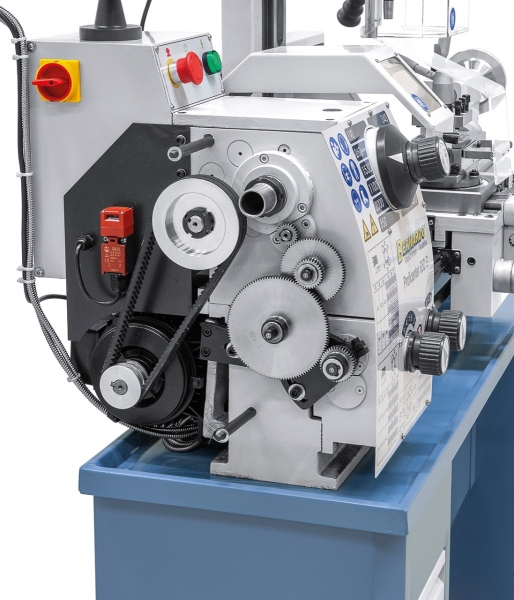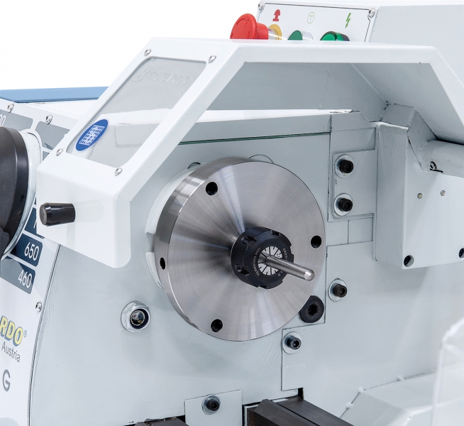 Das Bearbeitungszentrum Proficenter 650 G ist serienmäßig mit einer Leitspindel zum Gewindeschneiden bzw. für den automatischen Längs- und Planvorschub ausgestattet. Durch das 12-Stufen-Schaltgetriebe wird ein schnelles Einstellen der Drehzahlen ermöglicht - kein Keilriemenwechsel notwendig. Die Maschine ist serienmäßig mit einer digitalen Positionsanzeige Bernardo ausgestattet.