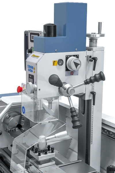 Das Bearbeitungszentrum Proficenter 650 G ist serienmäßig mit einer Leitspindel zum Gewindeschneiden bzw. für den automatischen Längs- und Planvorschub ausgestattet. Durch das 12-Stufen-Schaltgetriebe wird ein schnelles Einstellen der Drehzahlen ermöglicht - kein Keilriemenwechsel notwendig. Die Maschine ist serienmäßig mit einer digitalen Positionsanzeige Bernardo ausgestattet.
