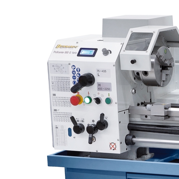 Das Modell Proficenter 880 G Vario ist serienmäßig mit einem Vorgelege ausgestattet, wodurch ein Wechseln der Drehzahlstufe mittels Keilriemen entfällt. Ein weiteres Merkmal dieser Maschine ist der serienmäßige Frequenzumrichter, wodurch ein hohes Drehmoment im unteren Drehzahlbereich und eine annähernd konstante Drehzahl unter Last gewährleistet wird. Bohren, Fräsen und Drehen auf kleinstem Raum, serienmäßig mit digitaler Anzeige für Bohrtiefe und Drehzahl zum komfortablen Arbeiten, sowie eine große Spindelbohrung, alles kombiniert in einer Maschine.