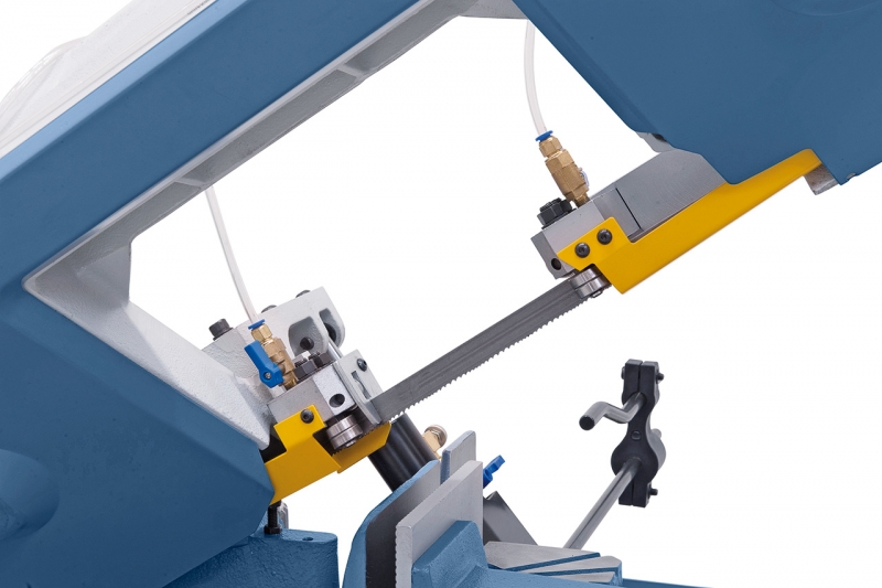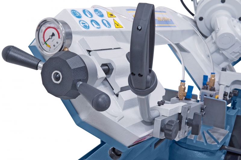 Die Horizontalbandsäge HBS 210 PRO mit schwenkbarem Sägebügel ermöglicht ein platzsparendes Arbeiten, das feinfühlige Absenken erfolgt über einen Hydraulikzylinder. Ihren Einsatzbereich findet diese hochwertige Bandsäge vorwiegend beim professionellen Anwender.
