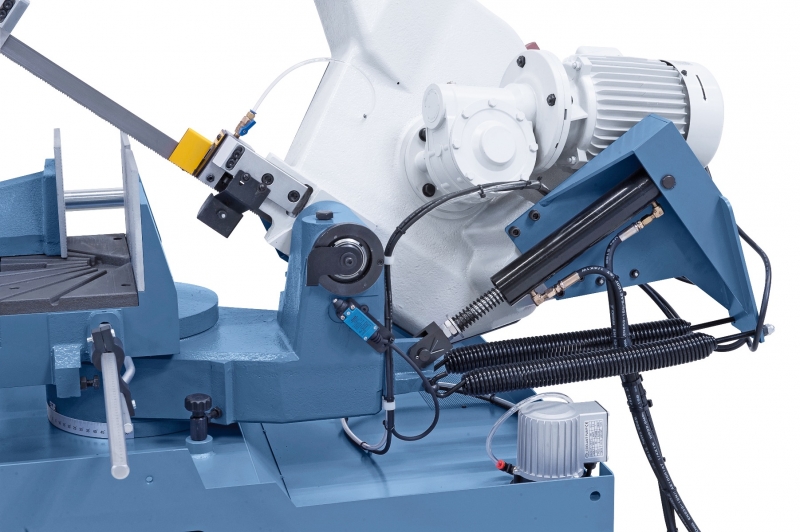 Das Modell MBS 530 DG ist eine präzise Horizontalbandsäge für den universellen Einsatz. Die Merkmale dieser Maschine sind der schwenkbare Sägebügel für Doppelgehrungsschnitte von -45° bis +60°, sowie ein Hydraulikzylinder zum feinfühligen Absenken mittels Regelventil. Ihren Einsatzbereich findet diese Maschine in Schlossereien, Reparaturbetrieben, im Formen- und Werkzeugbau, ...
