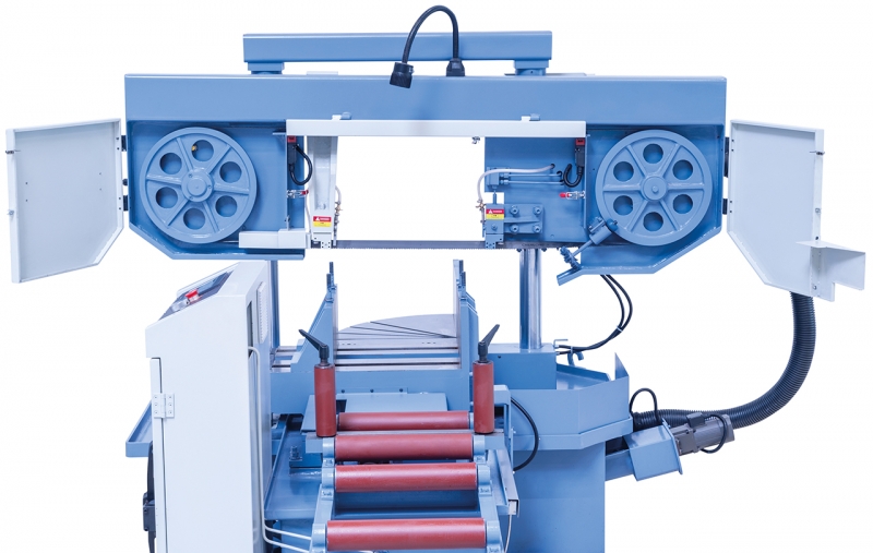 Das Modell BSMG ist eine vollautomatische Gehrungsbandsäge (bis 45°) mit programmierbarer Schnittwinkelverstellung und umfangreicher Ausstattung (wie z.B. PLC-Steuerung, stufenlose Bandgeschwindigkeit, automatische Bandbruchkontrolle,….). Die integrierte PLC-Steuerung ermöglicht ein vordefinieren der benötigten Stückzahl und Schnittlänge, wodurch eine wirtschaftliche Serienfertigung gewährleistet wird.