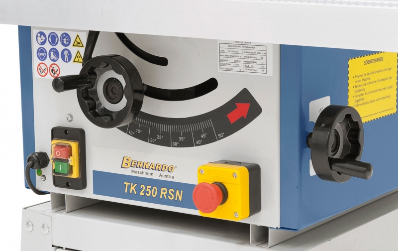 A TK 250 RSN asztali körfűrész lényegében a zárt gépalapzatuk által különbözik az RN-modelltől. Ezáltal a gép nagyobb stabilitást és állóképességet nyer.