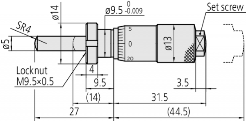 Micrometer Head, Spindle Feed 0,25mm/rev
