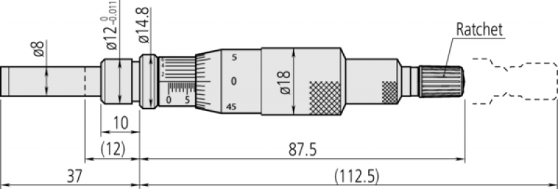 Beépíthető mikrométer álló orsóval és racsnis stoppal