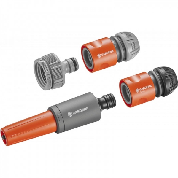 A GARDENA Basic Induló készlet tartalmazza a ház körüli és kerti öntözési és tisztítási feladatokhoz szükséges alkatrészeket. A használatra kész készlet tartalmaz egy adaptert 26,5 mm-es (G 3/4") és 33,3 mm-es (G 1") menettel rendelkező vízcsapokhoz, egy Basic tömlőelemet, egy Basic Vízmegállítót, valamint egy Basic locsolópisztolyt. A locsolópisztoly vízsugara teljesen szabályozható, a finom permettől a teljes vízsugárig terjed, ideális a különböző öntözési és tisztítási feladatokhoz, például a teraszok vagy a kerti szerszámok tisztításához. A Vízmegállító gondoskodik arról, hogy a víz automatikusan megálljon, amikor eltávolítod a tartozékot. A víz csak akkor indul újra, ha az új elem csatlakoztatva van. A fröccsenésgátló csapelemnek köszönhetően szárazon dolgozhatsz a csapnál. A speciális formájú csatlakozás biztosan tartja a tömlőt. A színkódnak köszönhetően könnyedén meg lehet különböztetni a tömlő szürkével jelölt kezdetét és fekete végét. A készlet kompatibilis a 13-15 mm-es (1/2" – 5/8") tömlőkkel. A GARDENA Basic Induló készlet egy Németországban gyártott minőségi termék, amelyre a GARDENA öt év szavatosságot vállal, ha regisztrálod a terméket a gardena.com/registration oldalon a vásárlást követő 3 hónapon belül. Az Original GARDENA System.