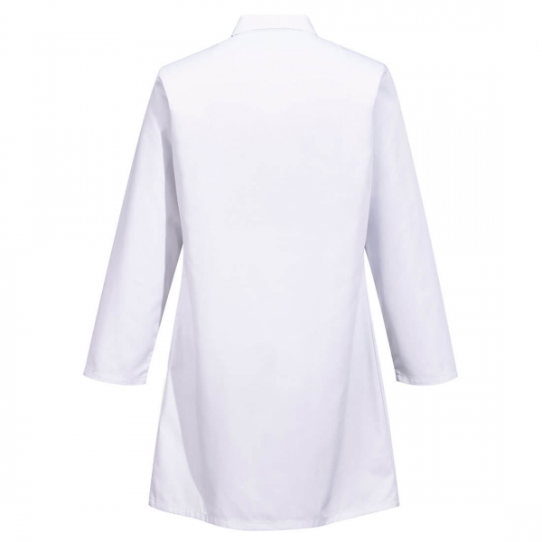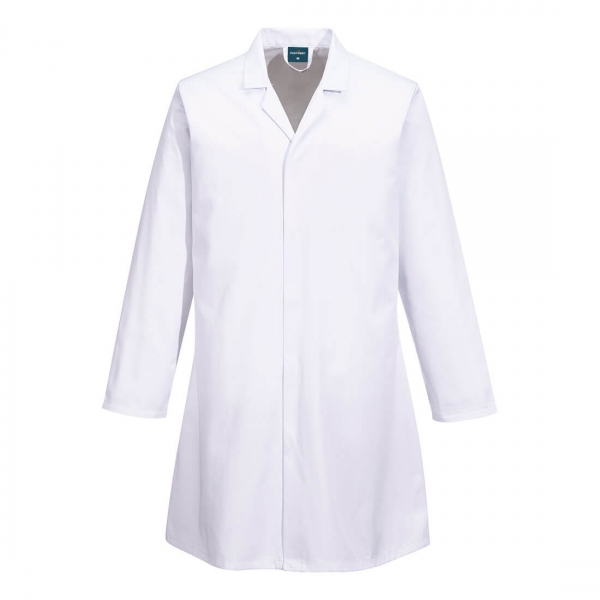 Kopásálló; tartós; színtartó anyagból. Az alapanyag nem zsugorodik; megőrzi a termék eredeti méretét a mosások után. Kontrasztos gallér a magas kockázatú munkahelyi területek azonosítására és a keresztszennyeződés korlátozására. Rejtett patentos elülső rész a könnyű hozzáférésért; alkalmas ipari mosodákhoz és otthoni mosáshoz. Nincsenek külső vagy belső zsebek a szennyeződések és baktériumok megkötésének elkerülése érdekében Gépben mosható 60°C.