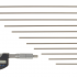 Cserélhető rúd típusú mikrométer nagy méréstartománnyal. Jellemzői: ø 4 mm cserélhető rudak, leppelt mérőfelület, nagy méréstartomány 25 mm lépésekben. Racsni az állandó mérőerő biztosításához. Mérőrúd rögzítővel. SPC kimenet.