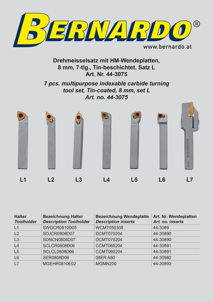 Esztergavéső tétel HM-fordítólappal, 8 mm, 7-részes, L tételBernardo Magyarországi Importőr