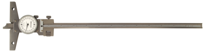 Mitutoyo órás mélységmérő 100 mm alappal és finomállítással. Edzett, rozsdamentes acél kivitel.