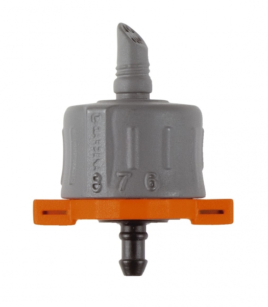 A GARDENA Micro-Drip-System részét képező szabályozható nyomáskiegyenlítős végcsepegtető ideális a különálló növények vagy eltérő vízigényű növényekből álló hosszabb sorok pontszerű öntözésére. A szükséges vízmennyiség a csepegtető mennyiségskálája segítségével állítható be, 1-8 liter/óra tartományban. A csepegtető nyomáskiegyenlítése (1-4 bar) biztosítja az egyenletes vízelosztást - függetlenül a víznyomástól. Az öntisztuló membrán- és labirintustechnológiának köszönhetően garantált a hosszú távú, megbízható működés. Különálló növények öntözéséhez a végcsepegtetőt egy elosztócső (3/16") végébe kell belecsavarni. A 13 mm-es (1/2") vezetékcső a szerelőeszköz (cikkszám: 8322-20) segítségével kilyukasztható; ebbe a lyukba kell beilleszteni a végcsepegtetőt. A csomag öt végcsepegtetőt tartalmaz.