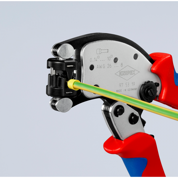 Knipex 97 53 19 Twistor® T önbeálló krimpelő fogó huzalvéghüvelyekhez forgatható vágófejjel