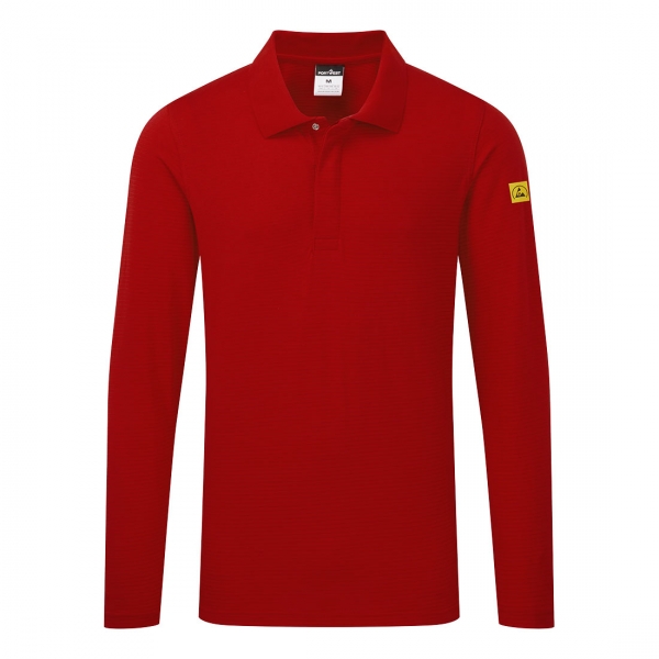ESD környezetben történő használatra alkalmas hosszú ujjú póló, amely az EN 61340-5-1 szabvány szerint tesztelt, extra komfortot nyújtó magas pamut tartalommal, bordázott gallérral, karcolásmentes kialakítással (rejtett fém alkatrészekkel), szövetbe kötött szénszálakkal (ESD és antisztatikus tulajdonságokat biztosítanak) és CE minősítéssel rendelkezik.