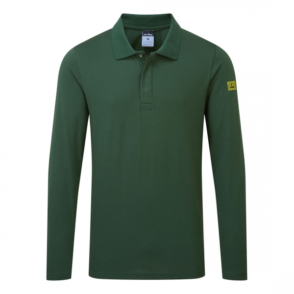 ESD környezetben történő használatra alkalmas hosszú ujjú póló, amely az EN 61340-5-1 szabvány szerint tesztelt, extra komfortot nyújtó magas pamut tartalommal, bordázott gallérral, karcolásmentes kialakítással (rejtett fém alkatrészekkel), szövetbe kötött szénszálakkal (ESD és antisztatikus tulajdonságokat biztosítanak) és CE minősítéssel rendelkezik.