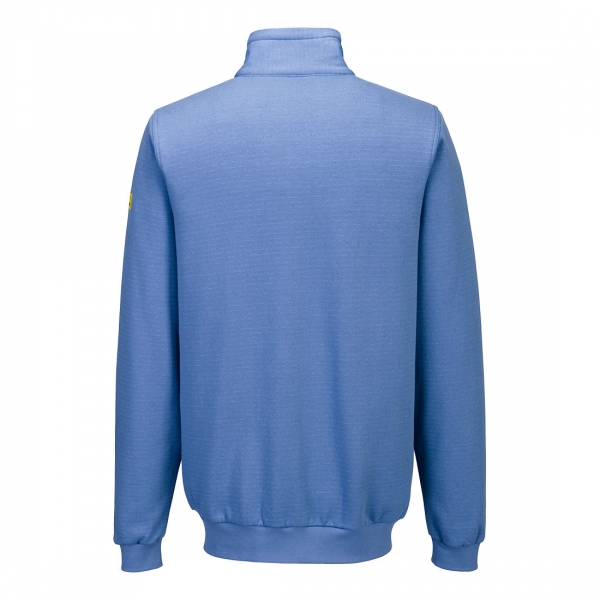 ESD környezetben történő használatra alkalmas melegítőfelső, amely az EN 61340-5-1 szabvány szerint tesztelt, extra komfortot nyújtó magas pamut tartalommal, a biztonságos tárolás érdekében 2 zsebbel, meleget és extra komfortot biztosító bordás mandzsettával, a kényelmes illeszkedésért bordázott szegéllyel, maximális kényelmet biztosító, teljesen gumírozott derékkal, szövetbe kötött szénszálakkal (ESD és antisztatikus tulajdonságokat biztosítanak) és CE minősítéssel rendelkezik.