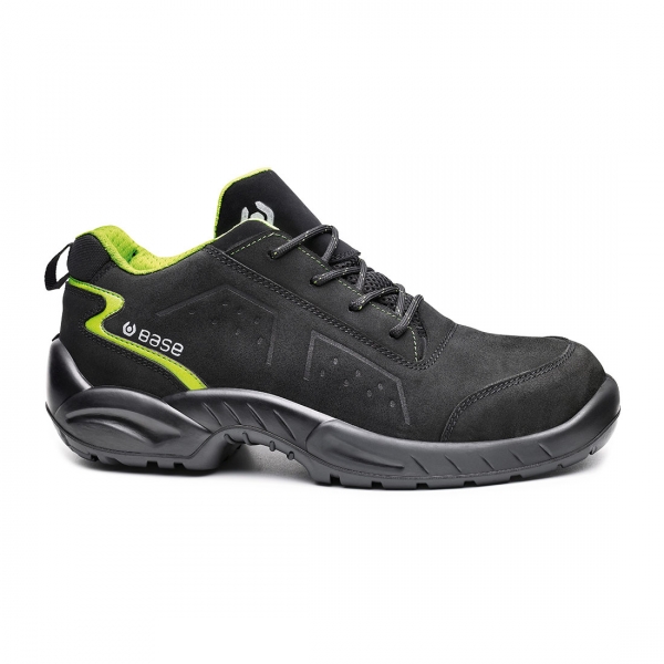 Base S3 munkavédelmi cipő magasabb vízálló tulajdonsággal rendelkező Nabutek bőr felsőrésszel. Acél orrvédelemmel és kompozit talpátszúrás elleni védelemmel ellátott, ütéscsillapítás a saroknál. Antisztatikus és szénhidrogéneknek ellenálló egyedi kialakítású talp, a férfi és női lábnak megfelelő külön kapli szélességgel is választható. Javasolt felhasználási területek: könnyűipar, mezőgazdaság, építőipar, szolgáltatóipar logisztika. Felhasznált anyagok és technológiák: Felsőrész: Nabutek technikai bőr.Bélés: SmellStop szagsemlegesítő és antibakteriális technológiával.Középtalp: Fresh'n Flex technológiával. Kapli: Acélból. Talp: Fáradtsággátló AirTech+TPU Skin technológiával.