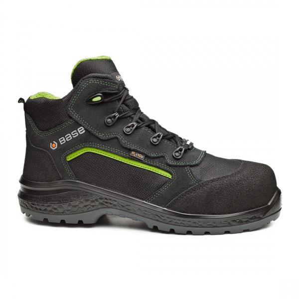 Base S3 munkavédelmi bakancs magasabb vízálló tulajdonsággal színbőr és technikai textil felsőrésszel és H2st0p membránnal. Kompozit orrvédelemmel és kompozit talpátszúrás elleni védelemmel ellátott, ütéscsillapítás a saroknál. A minél nagyobb tartósság érdekében orrborítással rendelkezik. Antisztatikus és szénhidrogéneknek ellenálló egyedi kialakítású talp,a férfi és női lábnak megfelelő külön kapli szélességgel is választható. Javasolt felhasználási területek: nehézipar, fémipar, könnyűipar, mezőgazdaság, építőipar. Felhasznált anyagok és technológiák: Felsőrész: Vízálló bőr és technikai textil H2st0p membránnal. Bélés: SmellStop szagsemlegesítő és antibakteriális technológiával. Kapli: SlimCap technológiával. Talp: Fáradtsággátló AirTech+TPU-Skin és Life Plus technológiával.