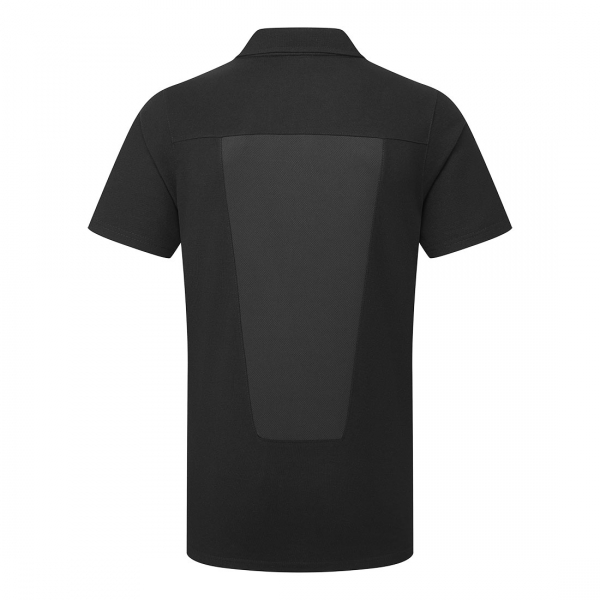 ordázott gallérral és mandzsettával rendelkező rövid ujjú pólóing.