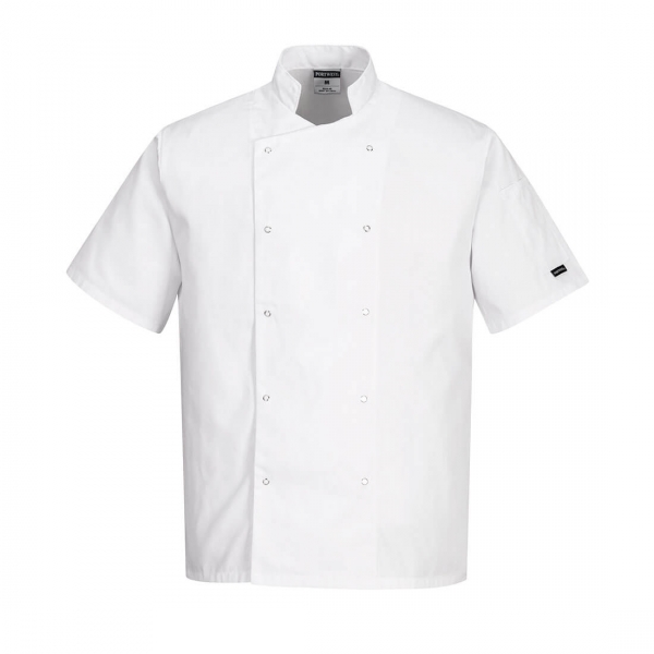 Nagy teljesítményt és kiváló viselkedési komfortot biztosító, minden igényt kielégítő, modern séfkabát modell, többfunkciós, stílusos unisex fazonban, 65% poliészter és 35% pamut összetételű alapanyagból. Strapabíró, kopásálló, tartós, színtartó, könnyű alapanyaga a mosási ciklusok után is megtartja méretét. Ez a munkaruha modell patent gombos elülső résszel, mandarin gallérral és tolltartó zsebbel készül.