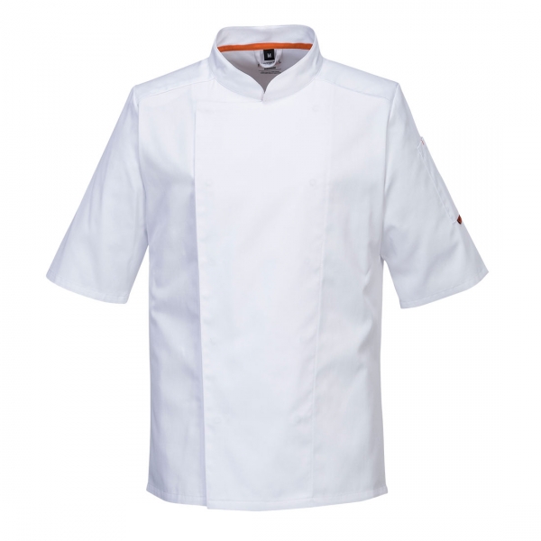 MeshAir panelekkel ellátott C738 ideális megoldás a forró konyhai környezetre. Dupla gombolású rejtett rögzítéssel és tollzsebbel. Stílusos és praktikus séfkabát. Rejtett patentos záródás Ujjzseb MeshAir™ szellőző hálós kialakítás Poliészter/Pamut Texpel szövet 1 zseb Mérettartó alapanyag Kötény akasztófül Slim fit