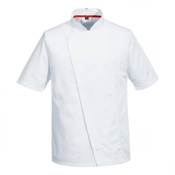 Tartós poliészter/pamut szövet, mely nagy teljesítményt és maximális viselési komfortot biztosít. A Texpel™ Eco egy prémium minőségű alapanyag, amely taszítja az olajat és a folyadékokat, így azok leperegnek a szövet felületéről. Ez a környezettudatos felületkezelés segít a foltok eltávolításában is a mosási folyamat során, így a ruhadarabok hosszabb ideig tisztábbak maradnak. MeshAir™ szellőzőhálós szövet a légáramlás fokozására. Az alapanyag nem zsugorodik, megőrzi a termék eredeti méretét a mosások után. Slim fit design a kivételes komfortért. Könnyen hozzáférhető elülső zippzárnyílás A külső akasztófül biztosítja a kötény biztonságos elhelyezését. Ujjzseb, 1 zseb a biztonságos tárolás érdekében. Gépben mosható 60°C-on.