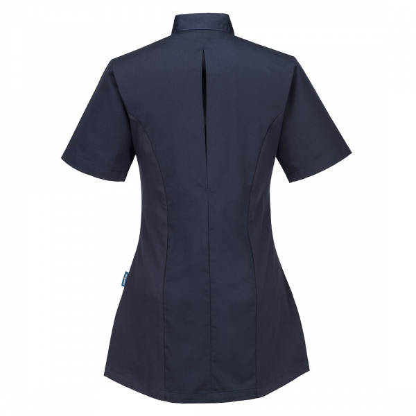 Tartós poliészter/pamut szövet női tunika, amely alapanyaga nem zsugorodik, megőrzi a termék eredeti méretét a mosások után. A kulcs fontosságú részeken innovatív rugalmas panelekkel, Action hátrésszel, oldalsó szellőzőnyílásokkal, mandarin gallérral és egy könnyen hozzáférhető elülső cipzárnyílással rendelkezik. A termék gépben mosható 60°C-on.