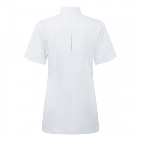 Tartós poliészter/pamut szövet női tunika, amely alapanyaga nem zsugorodik, megőrzi a termék eredeti méretét a mosások után. A kulcs fontosságú részeken innovatív rugalmas panelekkel, Action hátrésszel, oldalsó szellőzőnyílásokkal, mandarin gallérral és egy könnyen hozzáférhető elülső cipzárnyílással rendelkezik. A termék gépben mosható 60°C-on.