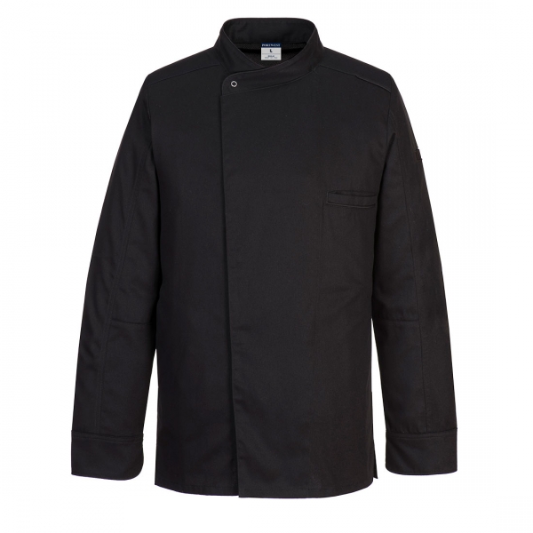 Ez a séfkabát könnyű anyagból készült, és modern, karcsúbb sziluettet kínál ergonomikus illeszkedéssel. A kabát jellemzői közé tartozik a dupla mellkasú, rejtett szegecses elülső záródás, a cipzáras oldalzseb és a nagy MeshAir Pro panelek a háton és a hónaljban a kiváló légáteresztő képesség érdekében. 100% pamut alapanyagból készült a magasabb komfort és lélegzőképesség érdekében, Prémium folttaszító bevonat, mely taszítja az olajat, a vizet és a szennyeződéseket., MeshAir™ szellőzőhálós szövet a légáramlás fokozására, Rejtett patentos elülső rész a könnyű hozzáférésért, Rejtett cipzáros zseb, Kiváló stílus francia mandzsettákkal, Slim fit design a kivételes komfortért, 100% pamut alapanyagból készült a magasabb komfort és lélegzőképesség érdekében, 3 sokoldalú, praktikus tárolózsebbel, Új modell