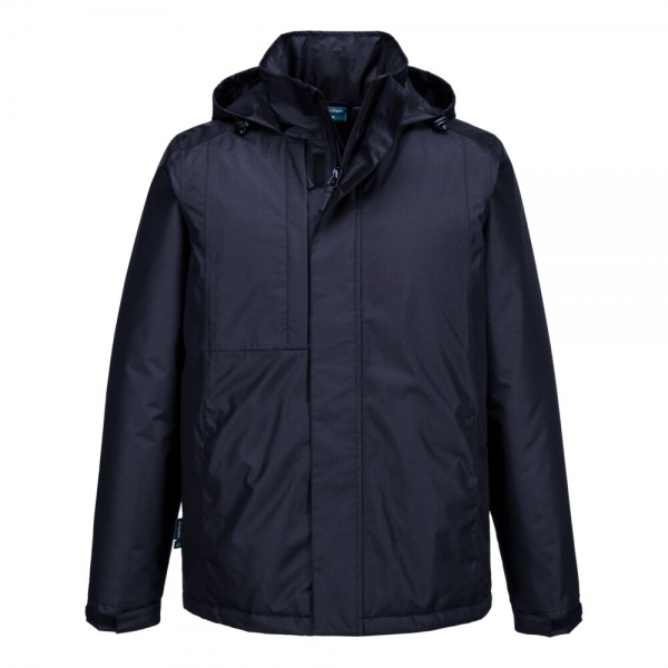 A víz behatolását megakadályozó vízálló ragasztott varratokkal, rendkívül vízálló, PFAS-mentes Texpel Splash Eco szövetkikészítéssel (a víz lepereg a szövet felületéről), praktikus rejtett kapucnival, húzózsinóros kapucnival és szegéllyel, a biztonságos illeszkedésért tépőzáras, állítható mandzsettával, dupla viharlebennyel, 8 sokoldalú, praktikus tárolózsebbel, a mellkason cipzáras zsebbel, két alsó zsebbel, belső alsó zsebekkel, telefon és tolltartó zsebbel és CE minősítéssel rendelkező kabát, amely újrahasznosított poliészter felhasználásával készült és teljesen bélelt és párnázott.