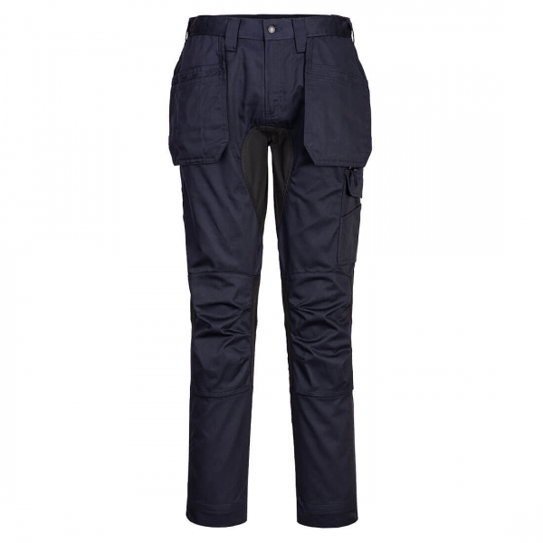 A tartós pamut-poliészter keverékszövet lehetővé teszi mind a nagy teljesítményű, maximális hatékonyságú munkavégzést, mind a kényelmet. Stretch burkolat lehetővé teszi a könnyű mozgást. Az okos funkciók közé tartozik a felülről betölthető térdvédő zseb és a könnyen hozzáférhető, többirányú combzseb a telefon, a kulcsok és a szerszámok biztonságos tárolására. Innovatív rugalmas panelek kulcs fontosságú részeken melyek kiváló kényelmet és rugalmasságot biztosítanak. Tartós poliészter/pamut szövet, mely nagy teljesítményt és maximális viselési komfortot biztosít. 10 sokoldalú, praktikus tárolózseb, kalapács hurok a munkaeszközök biztonságos tárolásához és könnyű hozzáférést biztosító tárolózseb. Oldalt gumírozott derék az egyedülálló kényelemért. 40 UPF minősítésű alapanyag, amely az UV-sugarak 98%-át blokkolja.