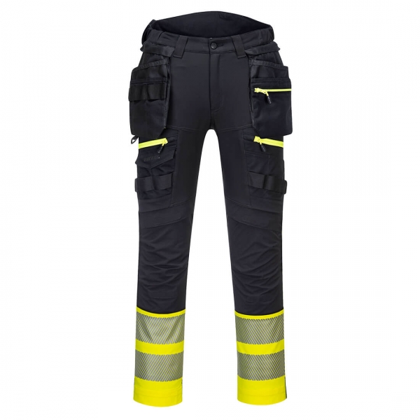 A DX4 lengőzsebes nadrág okosan megtervezett, a dinamikus 4X stretch anyag célzott elhelyezésével biztosítja a maximális mozgástartományt munka közben. Ezek a lengőzsebes nadrágok magasan emelkedő hátsó derékpánttal rendelkeznek, oldalt elasztikusak, ezzel biztosítva a védelmet minden pozícióban. Előre hajlított, felülről tölthető, állítható térdvédő zsebek, nagyméretű elülső zsebek és többfunkciós cipzáras combzsebek biztonságos tárolást kínálnak. Háromszoros varrás a maximális tartósság érdekében. 4 irányban nyúló anyag a nagyobb mozgásszabadság és a kényelem érdekében, Könnyű, rugalmas HiVisTex Pro szegmentált fényvisszaverő szalag a jobb láthatóság érdekében, 16 sokoldalú, praktikus tárolózsebbel, Colstok tartó zseb, Háromszoros varrások az extra tartósságért, Sokoldalú lecipzározható lengőzsebek, 40+ UPF minősítésű alapanyag, amely az UV-sugarak 98%-át blokkolja., EN ISO 20471 szabvány szerint 25 mosásra minősítve, Új modell, Slim fit design a kivételes komfortért, Felső nyílású térdzsebek a gyors és könnyű hozzáférésért, Oldalt gumírozott derék az egyedülálló kényelemért, CE minősítés, *Regisztrált európai közösségi design, Megfelel az EN ISO 20471 szabványnak, Azonosítókártya tartó az igazolványok megjelenítéséhez, Hőillesztett, szegmentált fényvisszaverő szalag hozzáadott jól láthatóságért, Rejtett telefontartó zseb, Egy pár díjmentes térdpárna a DX4 derekas nadrághoz