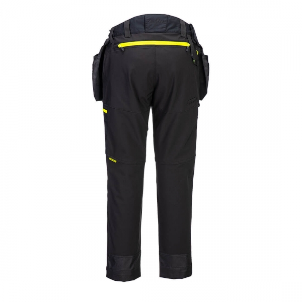 A DX4 lengőzsebes nadrág egy precíziós tervezésű, forradalmian légáteresztő, vízálló, szélálló és szakadásgátló anyagból készült. A DX4 lengőzsebes nadrág okosan megtervezett, a dinamikus 4X stretch anyag célzott elhelyezésével biztosítja a maximális mozgástartományt munka közben. Ezek a lengőzsebes nadrágok magasan emelkedő hátsó derékpánttal rendelkeznek, oldalt elasztikusak, ezzel biztosítva a védelmet minden pozícióban. Az előre hajlított, felülről tölthető, állítható térdpárna zsebek, a nagyméretű elülső zsebek és a többfunkciós cipzáras combzsebek biztonságos tárolást biztosítanak a telefon, a tollak és a szerszámok számára. Háromszoros varrás a maximális tartósság érdekében. Tartós, légáteresztő, szélálló és vízálló szövet Rendkívül vízálló, környezettudatos szövet kivitel, a víz lepereg a szövet felületéről. 4 irányban nyúló anyag a nagyobb mozgásszabadság és a kényelem érdekében 14 sokoldalú, praktikus tárolózsebbel Többféle cipzáros zseb a biztonságos tároláshoz Megerősített ágyék rész a kopás elkerülésének érdekében Hajlított térd kialakítás lehetővé teszi a szabadabb mozgást Fényvisszaverő csíkozás a fokozott láthatóságért Két szintes térdvédő zsebek, melyek két pozicionálási lehetőséget biztosítanak Sokoldalú lecipzározható lengőzsebek Telefontartó zseb Colstok tartó zseb Kalapács hurok a munkaeszközök biztonságos tárolásához Oldalt gumírozott derék az egyedülálló kényelemért Állítható szegély - normál és hosszú szár között Magasított derék védelmet nyújt minden munkakörülmény közt Szövet öv hurok az extra tartósság érdekében Kézre eső derékpánt D gyűrű, kulcsoknak vagy azonosítókártyának Minden fontos helyen megerősített Háromszoros varrások az extra tartósságért Slim fit design a kivételes komfortért CE minősítés UKCA jelöléssel Új modell