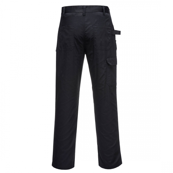 Tartós poliészter/pamut szövet anyaggal, rejtett gomb záródással, oldalt gumírozott derékkal, 9 sokoldalú praktikus tárolózsebbel, lengő szerszámtartó zsebbel, 2 elülső zsebbel, kalapács tartó hurokkal, combzsebbel (hook and loop záródással), colstok tartó zsebbel, 2 hátsó zsebbel, alulról betölthető térdpárna zsebekkel, karcolásmentes kialakítással, rejtett fém alkatrészekkel és hosszabbítható lábhosszal (31" - 33") rendelkező nadrág, amely gépben mosható 60°C-on, alapanyaga nem zsugorodik (megőrzi a termék eredeti méretét a mosások után) és nem mágneses (nikkel- és vasmentes).