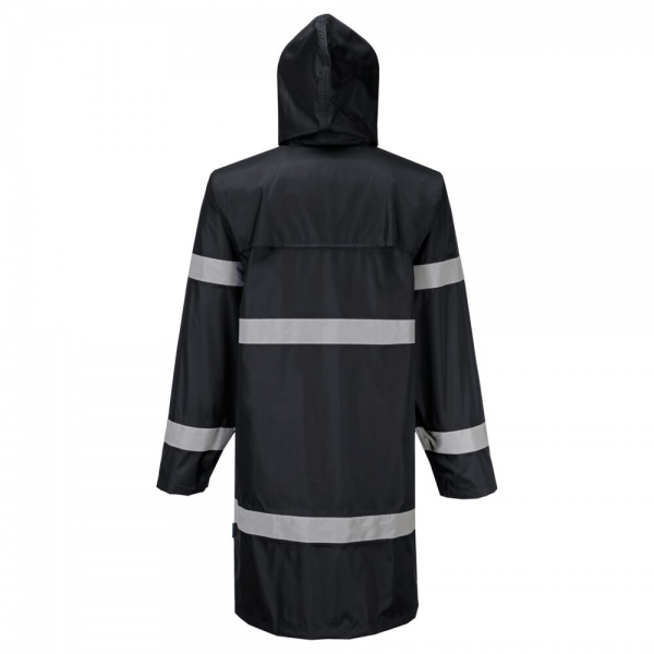 A víz behatolását megakadályozó vízálló ragasztott varratokkal, rendkívül vízálló, PFAS-mentes Texpel Splash Eco szövetkikészítéssel (a víz lepereg a szövet felületéről), jobb lélegzőképességet biztosító szellőzőnyílásokkal, belső gumírozott mandzsettával, könnyen hozzáférhető elülső cipzárnyílással, az elemek elleni védelem érdekében viharlebenyes elülső résszel, a fokozott láthatóságért fényvisszaverő szalaggal, a biztonságos tárolás érdekében 2 zsebbel, praktikus rejtett kapucnival, szellőzőcsatornákkal, REACH-nek megfelelő PVC bevonattal és CE minősítéssel rendelkező kabát.