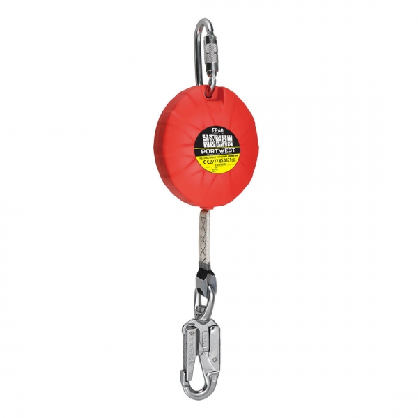Rendkívül erős polietilén anyagból, 3 méter hosszú hevederszalaggal készülő, acél karabinerrel ellátott zuhanásgátló blokk. A zuhanás gátló tartódobja automatikusan fel-, illetve letekercseli a hevedert a munkavégző mozgásának megfelelően. Két acél karabinerrel van ellátva. Könnyen telepíthető. Esés esetén, a blokk rövid távolság után záródik és megállítja az eseményt. Az összes Portwest hevederrel és csatlakozóval együtt használható. Maximális terhelhetősége: 100 kg. Igényes kiskereskedelmi kihelyezést segítő dobozba csomagolva.