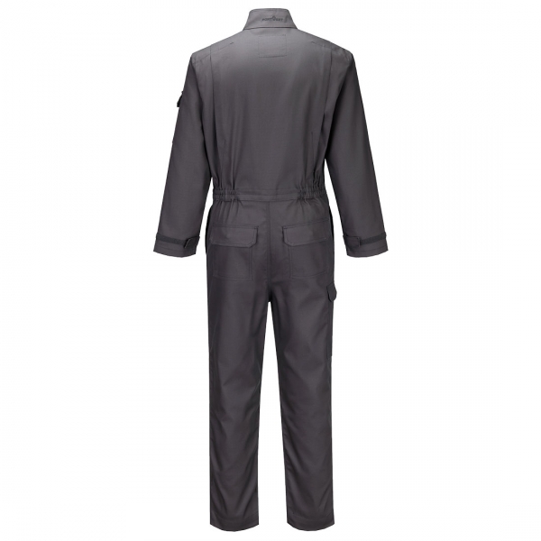 Lángálló overál, amely védelmet nyújt sugárzó, konvektív és kontakt hő ellen, nem mágneses (nikkel- és vasmentes), ATEX környezetben való viselésre alkalmas, oldalsó hozzáférésű nyílásokkal, colstok tartó zsebbel, vállpárna zsebekkel (védik a vállrészt), külső szabvány címkével, tépőzáras állítható mandzsettával, az olvadt fém fröccsenések ellen minősített védelemmel, hosszabbítható lábhosszal (31" - 33"), 40+ UPF minősítésű alapanyaggal (az UV-sugarak 98%-át blokkolja), lángálló és ipari mosásra alkalmas szalaggal, kétutas cipzárral, két szintes térdvédő zsebekkel, 10 sokoldalú praktikus tárolózsebbel, rádió hurokkal és CE minősítéssel rendelkezik.