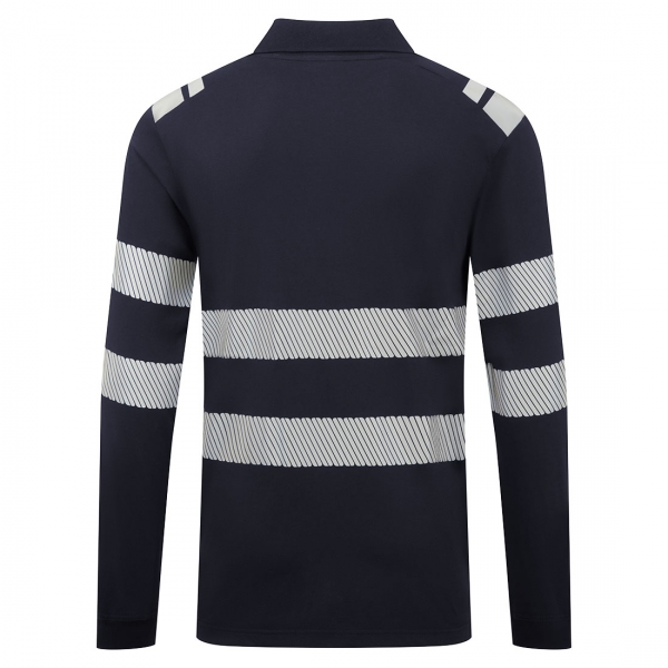 Sugárzó, konvektív és kontakt hő ellen védelmet nyújtó hosszú ujjú lángálló pólóing, amely anyagában lángálló tulajdonságai nem csökkennek a mosási ciklusokkal, ATEX környezetben való viselésre alkalmas, extra komfortot nyújtó magas pamut tartalommal, hőillesztett, szegmentált fényvisszaverő szalaggal, kényelmes kialakítással, meleget és extra komfortot biztosító bordás mandzsettával, bordázott gallérral, gombos záródással, 40+ UPF minősítésű alapanyaggal (az UV-sugarak 98%-át blokkolja) és CE minősítéssel rendelkezik.