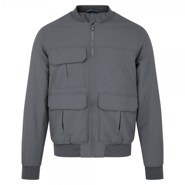 Rendkívül vízálló, PFAS-mentes Texpel Splash Eco szövetkikészítéssel (a víz lepereg a szövet felületéről), 6 sokoldalú, praktikus tárolózsebbel, biztonságos tárolást biztosító belső cipzáras zsebbel, kényelmes kialakítással, a fokozott védelem érdekében állvédővel, minden cipzárhoz kiváló tapadású húzóval és maximális kényelmet biztosító, teljesen gumírozott derékkal rendelkező bomber dzseki, amely teljesen bélelt és párnázott.