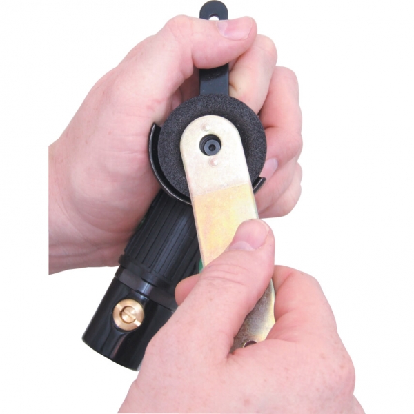 Fémek csiszolására, rozsdaeltávolításra, hegesztések el'készítésére és karosszériamunkákhoz, nehezen hozzáférhet' helyeken. A gumírozott markolat stabil és kényelmes fogást biztosít. Fordulatszám-szabályozó. Biztonsági kioldó billentyűvel működtetett fojtószelep. Er's biztonsági burkolat. Oldalsó használtleveg' kivezetés. Hosszú élettartamú csapágyazás. 2x A60, 1x A80 és 1x A120 50 mm-es csiszolókorongokkal kerül forgalomba. Terhelés nélküli fordulatszám: 20.000 rpm. Korong mérete: 50 x 4 x 9.6 mm (2" x 5/32" x 3/8"). Leveg' bemeneti csatlakozó