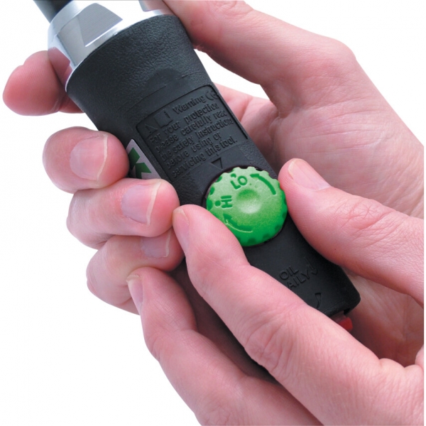 Terhelés nélküli fordulatszám: 22 000 rpm. Szorítópatron mérete: 6 mm. Leveg'-bemeneti csatlakozó: 1/4" NPT. Min. leveg'töml' méret (bels' átmér'): 3/8" (10 mm). Légnyomás: 90 PSI /6.2 bar. Leveg'fogyasztás: 4 CFM / 144 liter/perc*. Vibráció szint: 1.05 m/s. Teljes hossz: 194 mm.