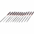 12 darabos készlet (Mindegyikb'l 1 db): Kézi, lapos, késpenge, kerek, félkerek, négyszög, háromszög, madárnyelv, lekerekített élű, horony, hézag, háromszög egy vágóéllel.