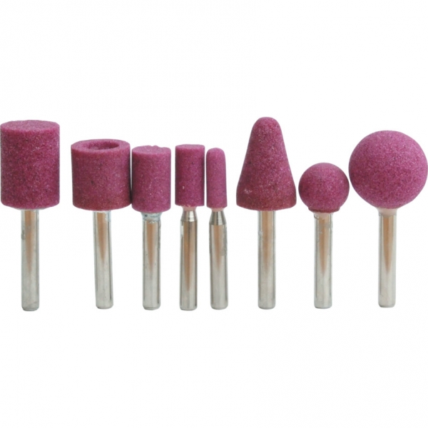 Válogatott alakú csapos köszörűkövek, melyek alkalmasak belső köszörülési műveletek széles skálájára levegős vagy elektromos szerszámgépekbe fúróba stb. fogva. 3 és 6 mm-es szárméretek. Anyaga 'Rubenit' alumínium-oxid, fémekhez való általános alkalmazásra.