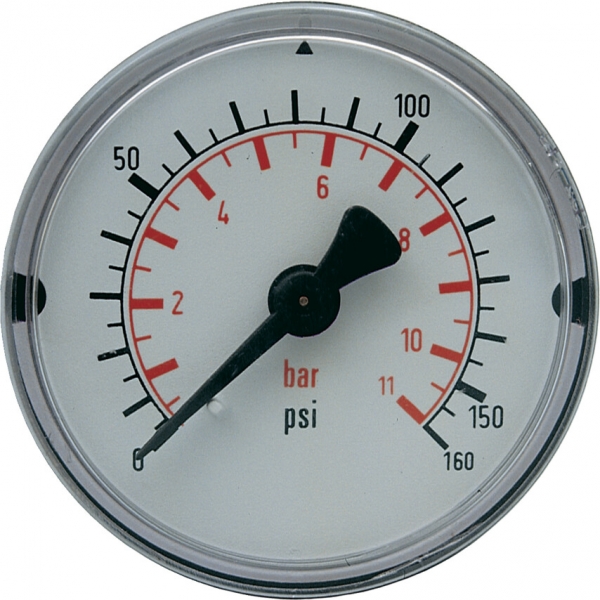 1/8" BSP sárgaréz menetes csatlakozóval használható nyomásmérésre PSI vagy bar érték leolvasással. Felszerelhető közvetlenül bármilyen szűrő/szabályozó/olajozó egységre. Kapható két átmérőben (40 és 50 mm), ütésálló ABS műanyagból készült. A hátoldalán szerelvényezett.