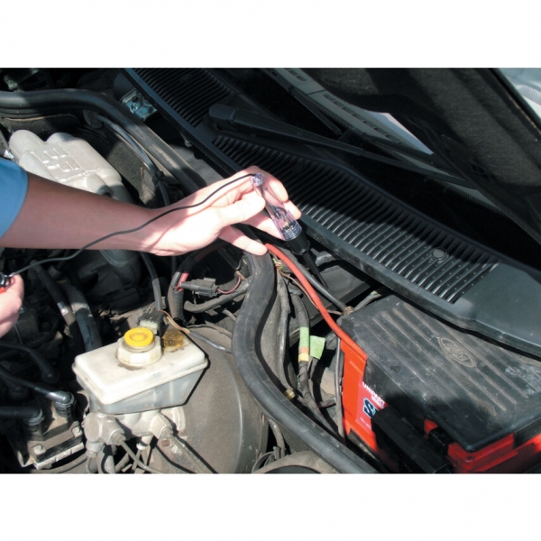 Feszültség alatt lévő hálózathoz használható, 6 és 12 V-os jármű villamossági rendszereknél. Beméri a rövidzárlatot, földelést, megszakított áramkört. 1 m-es vezetékkel. Szuper hegyes megeresztett acél mérőelektród szigetelésen keresztül történő mérésre. Mérőelektród hossza 45 mm.