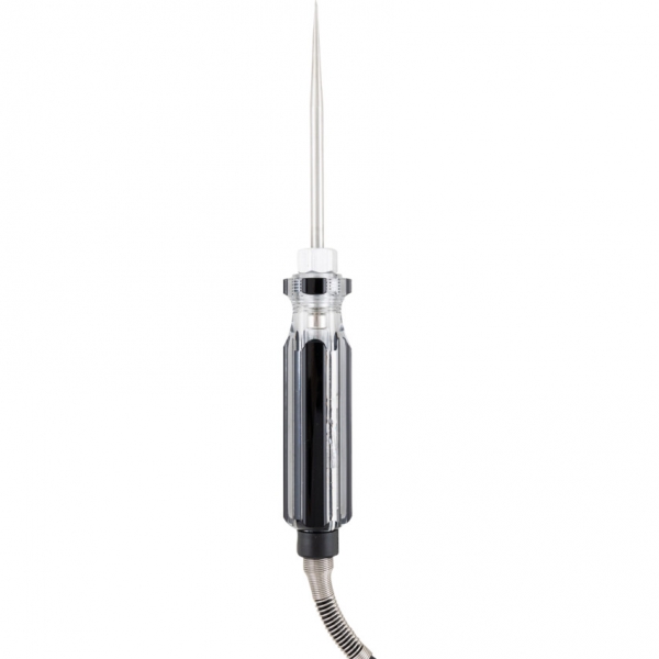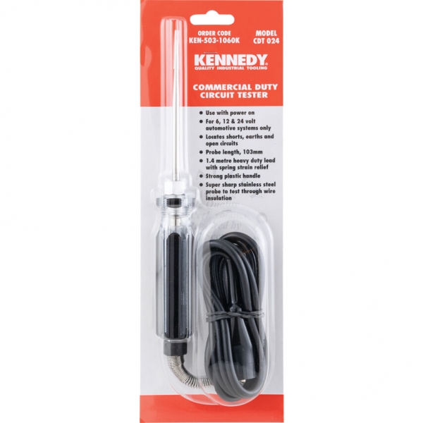 Feszültség alatt lévő hálózathoz használható, 6, 12, és 24 V-os jármű villamossági rendszereknél. Beméri a rövidzárlatot, földelést, megszakított áramkört. 1.4 m-es erős vezetékkel és rugós nyomáscsökkentővel. Szuper hegyes megeresztett acél mérőelektród szigetelésen keresztül történő mérésre. Mérőelektród hossza 100 mm.